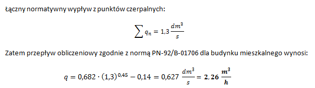 ∑qn – suma wszystkich normatywnych wypływów z punktów czerpalnych obsługiwanych przez wymiarowany odcinek instalacji, dm3/s