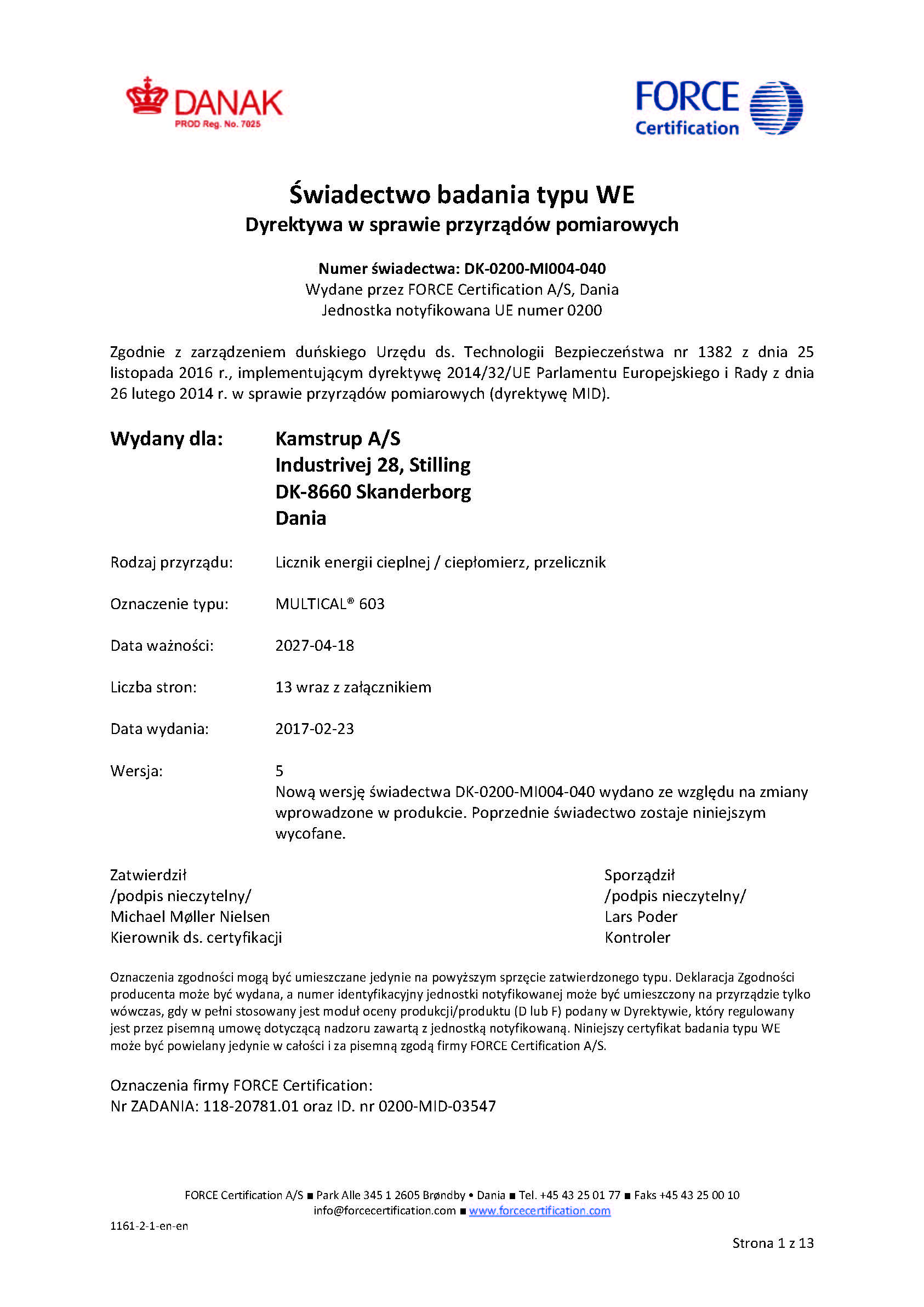 Zatwierdzenie Typu – HYDROSONIS-UP M603