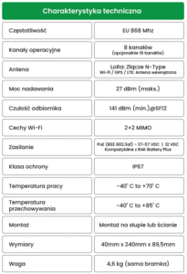 KLASA OCHRONY – Bramka RAK7289V2 posiada klasę ochrony IP67. Urządzenie jest przeznaczone do montażu na zewnątrz budynków.