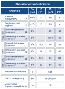 DOKŁADNOŚĆ – Wodomierz GSD8-RFM jest dostępny w dwóch klasach dokładności R160H-R50V i R100H-R50V. Dostępny w średnicach DN15-DN20.