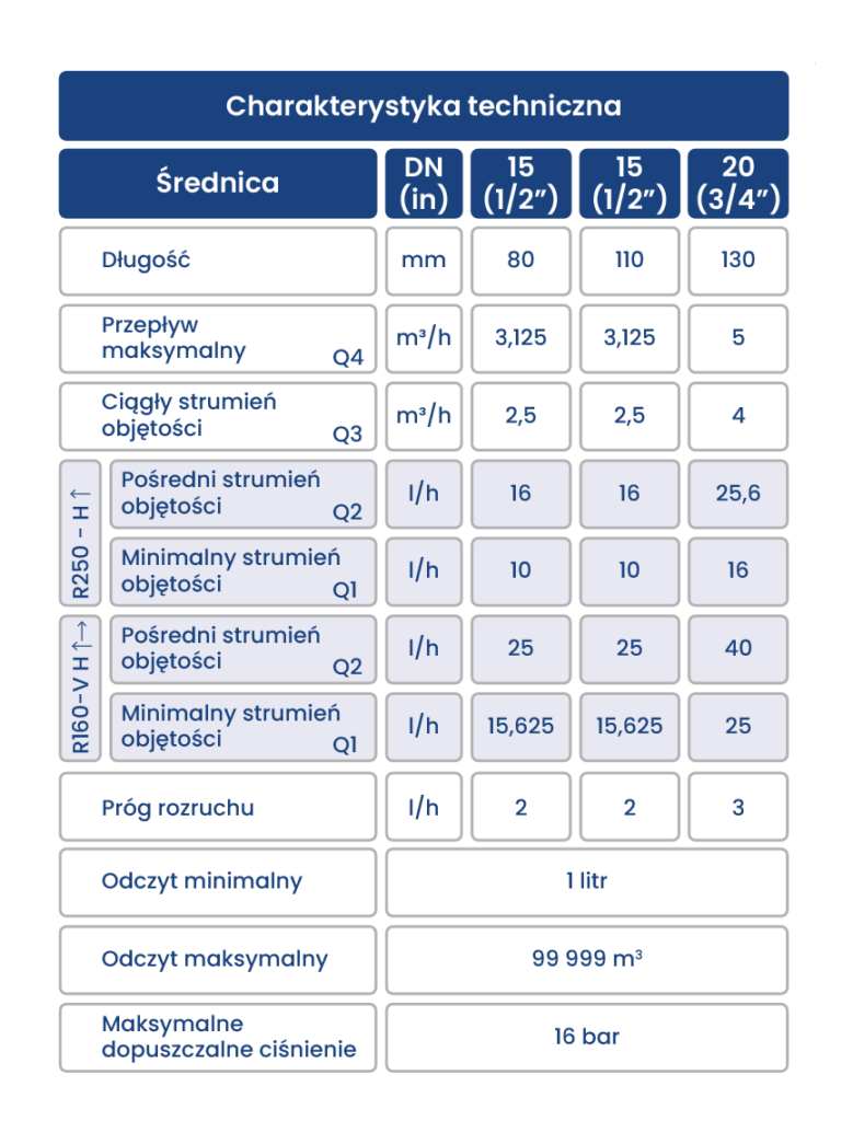 *prognozowana żywotność baterii zależna jest od konfiguracji, parametrów transmisji radiowej, warunków temperaturowych, klimatycznych i środowiskowych oraz sumarycznej ilości zliczonego przepływu.