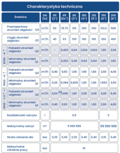 DOKŁADNOŚĆ – Wodomierz WDE-K50 jest dostępny w trzech klasach dokładności R250H-R160V, R160H-R100V i R100H-R100V. Dostępny w średnicach DN50-DN200.